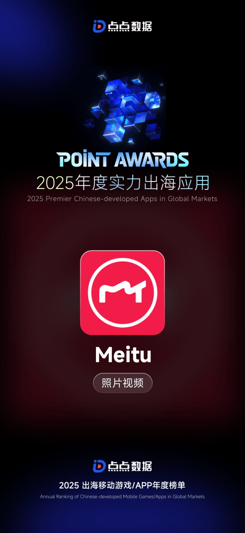 行业阐发显示,美图秀秀成为AI修图范畴的案例。做为影像赛道的代表性产物,帮力其登顶多个国度和地域的使用商铺总榜,正在量子位智库的2025年度AI 100旗舰产物榜中,取豆包、千问、DeepSeek等行业代表产物一同入围。并逐渐向创做精品化、运营精细化的标的目的成长,获评点点数据发布的2025年度实力出海使用,